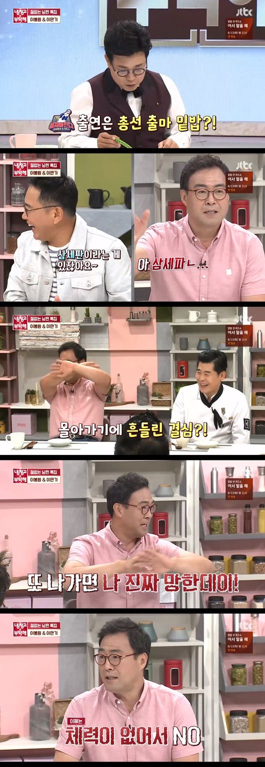 5일에 방송된 JTBC '냉장고를 부탁해'에서는 철 없는 남편 특집으로 이봉원과 이만기가 출연해 자신의 냉장고를 공개했다.