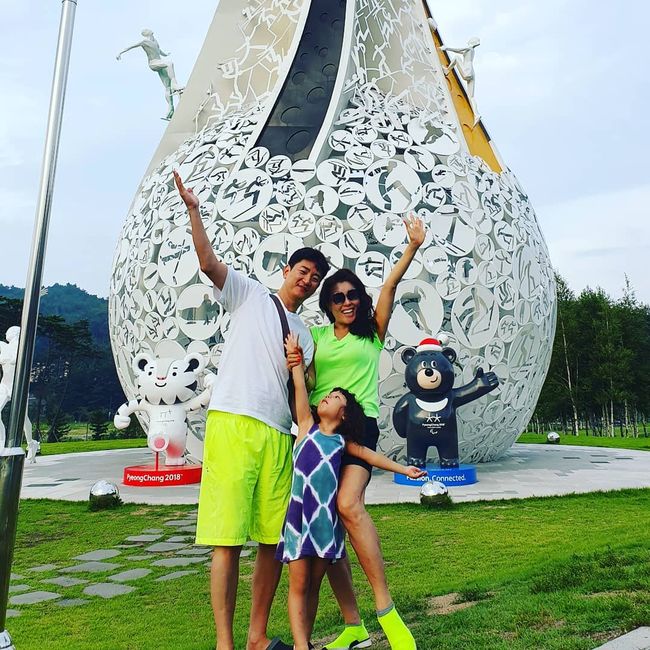 홍지민은 지난 5일 자신의 인스타그램을 통해 "평창 아빠 합류~ 오메나 짠 듯이 우리는 커플룩이 되었네. 왠지 앞으로 자주 갈거 같애~^^♡♡♡ #평창 #여긴 추워요 #힐링"이라는 글과 함께 사진 한 장을 게재했다.