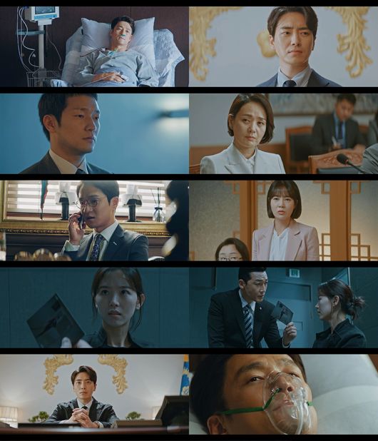 태익(최영우)이 쏜 총에 맞고 급히 병원으로 이송된 박무진. 총알 파편에 대동맥이 파열돼 10시간 이상 수술을 받아야 하는 위급한 상황이었다. 국정 공백을 막기 위해 박무진을 대신할 권한대행 지정이 불가피했지만, 문제는 헌법상 승계서열 1위인 기획재정부장관 또한 빗나간 줄 알았던 첫 번째 총격으로 부상을 입었다는 것. 다음 승계서열은 바로 국방부장관 오영석. 그렇게 박무진이 수술실로 들어간 그 시각, 오영석은 청와대에 입성했다.