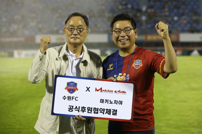 수원FC 김호곤 단장은 “구단과 팬들을 위해 후원해 주셔서 너무 감사드린다. 마키노차야 광교점을 위한 다양한 홍보와 함께 구단과 후원사 모두 서로 도움이 될 수 있도록 노력하겠다”라는 말을 전했다. / 10bird@osen.co.kr