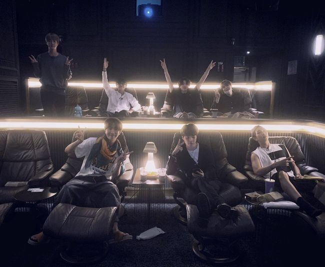그룹 방탄소년단이 영화 단체 관람 인증샷을 공개했다.