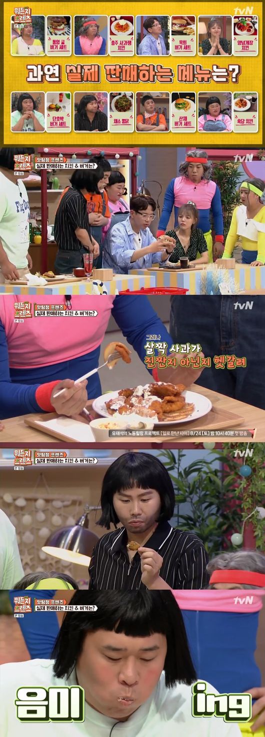 이렇게 각자 자신이 택한 음식을 맛 본 후 정답이 공개됐다. 실제 음식이 만들어지는 과정이 고스란히 소개 됐다. 정답은 채소 통닭, 육회 버거 세트 세트, 통영 굴 버거였다. 정답을 맞춘 양세형, 장성규, 박나래만 공짜로 음식을 먹었다 하지만 답을 맞추지 못해 카드결제를 한 프렌즈들 역시 맛있게 먹었다며 즐거워했다. /jmiyong@osen.co.kr