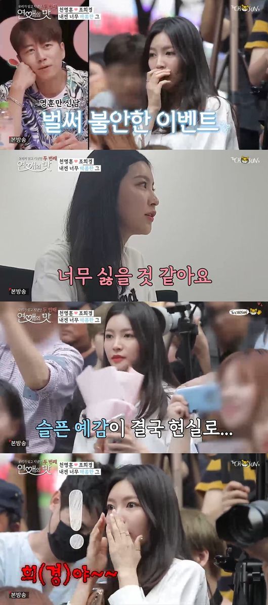 지난 8일 방송된 TV CHOSUN 연애 리얼리티 프로그램 ‘연애의 맛’ 시즌2에서는 선상 데이트에 이어 홍대에서 데이트를 이어가는 천명훈과 조희경의 모습이 그려졌다.
