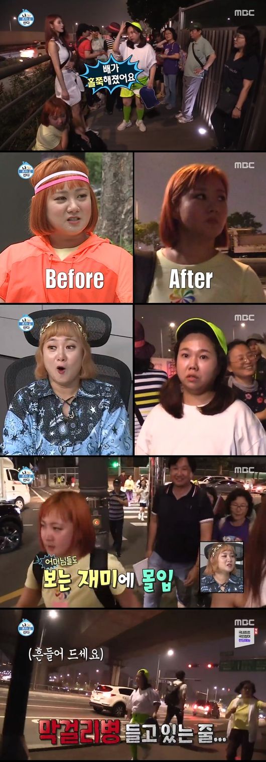 잠시 후 홍현희가 나타났다. 홍현희는 "잠깐 신발끈 묶는 사이에 이렇게 차이가 났다"고 말했다. 이때 미주가 "배가 홀쭉해졌다"고 말했다. 박나래 역시 공감하며 "붓기가 좀 빠진 것 같다"고 말해 눈길을 끌었다.