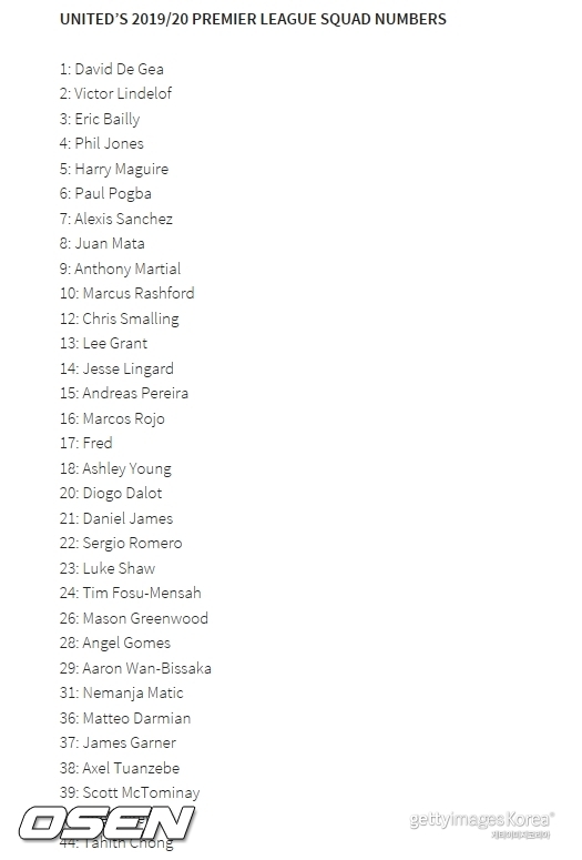 맨체스터 유나이티드는 10일(한국시간) 공식 홈페이지를 통해 2019-2020 시즌 등번호를 확정, 발표했다.