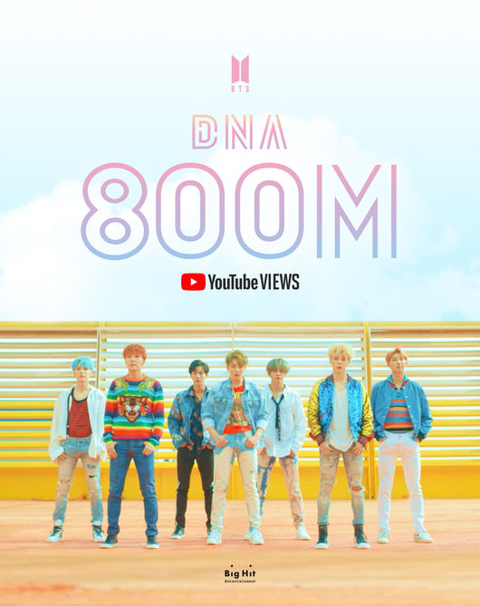 2017년 9월 발매한 방탄소년단의 LOVE YOURSELF 承 ‘Her’의 타이틀곡 ‘DNA’ 뮤직비디오는 10일 오전 6시 29분경 유튜브 조회수 8억 건을 넘었다. 이로써 ‘DNA’는 8억뷰를 돌파한 방탄소년단의 첫 뮤직비디오가 됐다.