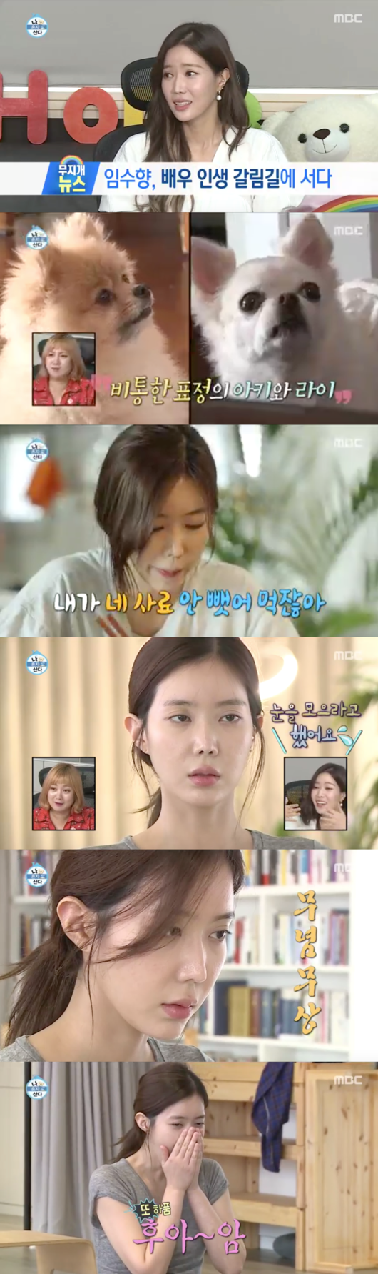 9일 방송된 MBC ‘나혼자 산다’에서 임수향은 반려견 3마리를 키우는 솔로 라이프를 공개했다. 아침에 일어나자마자 반려견들의 사료를 챙긴 그는 인스턴트 햄을 밥과 김, 김치에 싸서 그대로 먹는 놀라운 나트륨 식단을 자랑했다.