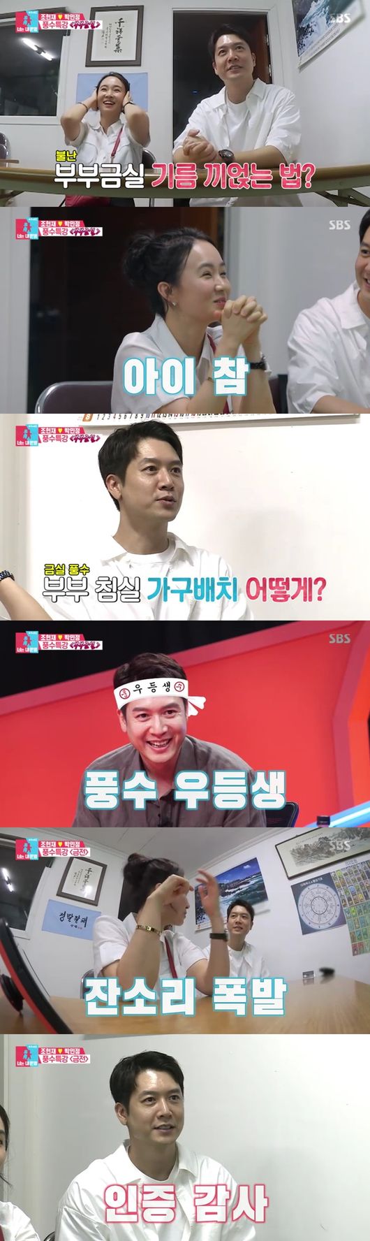 다음날 본격적으로 두 사람은 '풍수특강'을 배우러 나섰다. 풍수 전문가를 찾아간 것이다. 불신의 아내를 설득할 계획이었다. 집에서 풍수를 독학 중이란 조현재는 "부부금실, 어떻게 하면 더 사랑이 활활 탈 수가 있을까"라고 질문, 박민정은 "날 타죽일 셈이냐"며 당황했다. 이어 금실풍수 침대방향에 대해 질문했고,