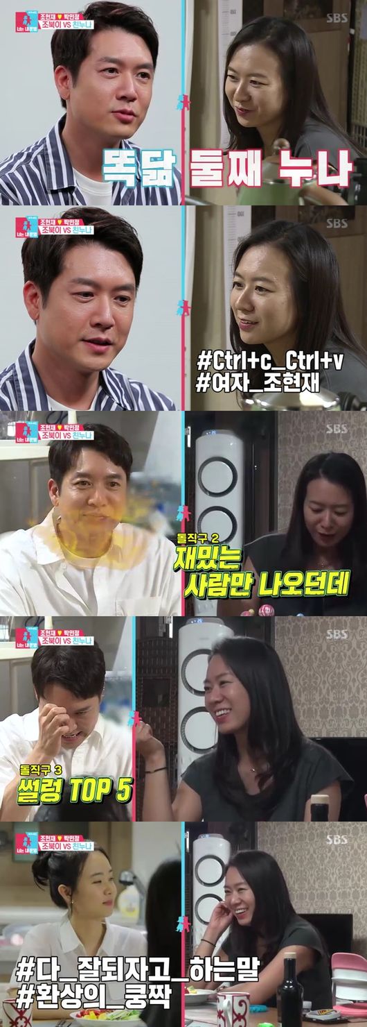두 사람은 어디론가 이동했다. 알고보니 둘째 누나 집을 방문한 것이다. 조현재 누나는 '여자 조현재' 모습으로 똑 닮은 모습이 눈길을 끌었다. 누나는 조현재를 보자마자 "네가 예능을 하냐, 넌 내가 만난 사람 중 썰렁한 사람으로 꼽힌다"면서 "너한테 뭘 뽑을 게 있냐"며 저격했다. 그러면서 "옛날에 잘생긴 조현재 아냐, 관리할 때가 아니다"며 돌직구를 날리며 현실남매 모습을 보였다. 아내도 "잘 되자고 하는 말"이라며 시누이와 환상의 쿵짝을 보였다.