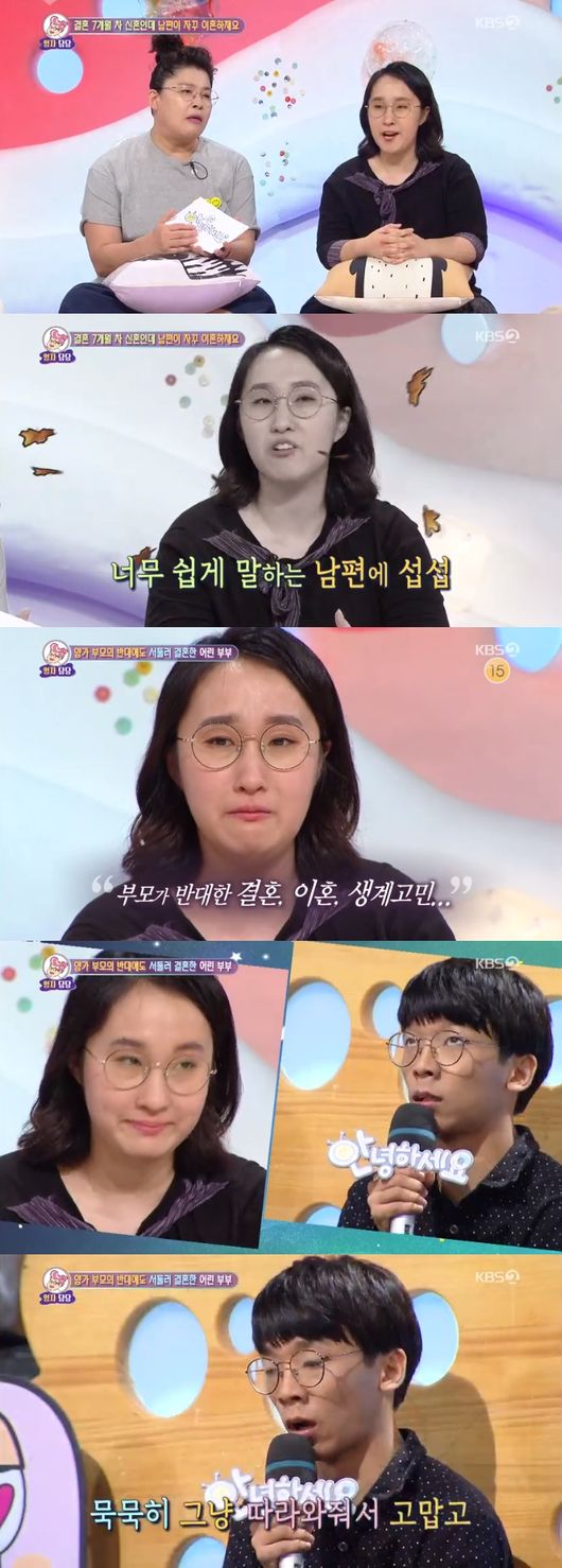 지난 12일 방송된 KBS ‘대국민 토크쇼 안녕하세요’에서는 워커홀릭 아내, 동생 바라기, 습관적으로 이혼하자는 남편의 고민이 방송을 탔다.