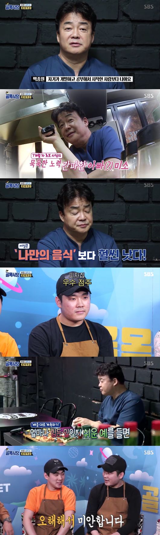 백종원은 "사장님 같은 점주는 우수점주"라면서 가맹점주에게 정확한 조리법과 시제품 제공해도 자기 방식대로 바꾸는 사장들이 결국 많아지지만 7개월간 피자 모양을 유지하고 토핑 개수도 유지해주는 모습이 눈길을 끈다고 했다. 백종원은 "어설픈 나만의 음식보다 훨씬 낫다"며 "맛도 중요하지만 일정한 맛 유지가 관건인데 그런 점에선 이정도면 성공한 것, 잘 인수받은 것"이라며 배운 그대로 유지하려는 노력을 높이 평가했다.