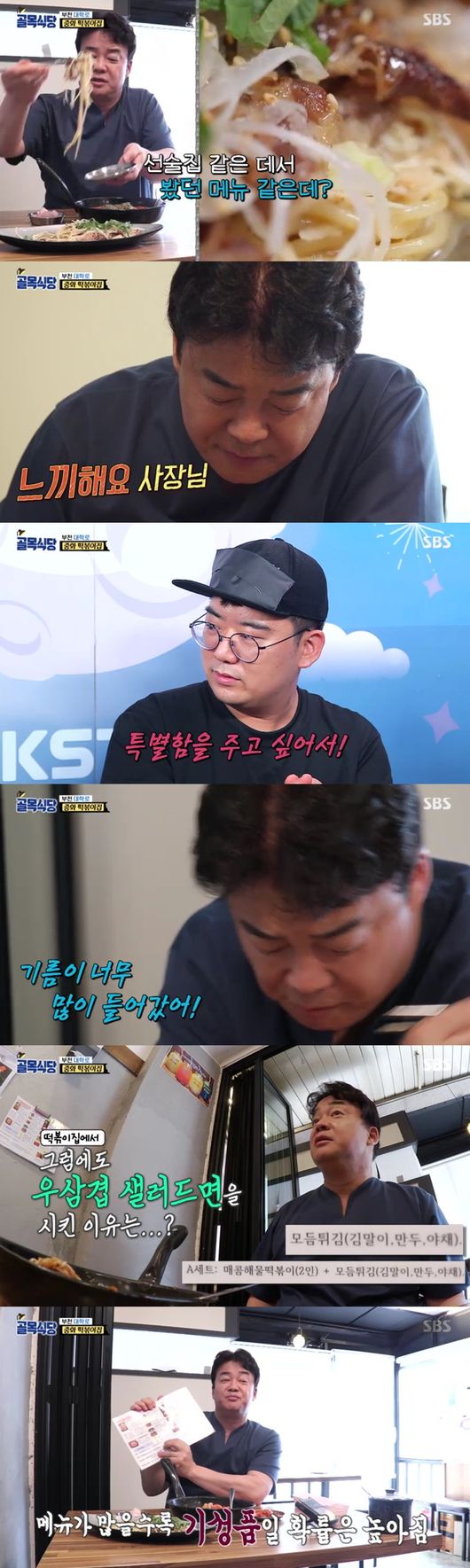 백종원이 중화 떡볶이집부터 방문했다. 백종원은 추천메뉴인 매콤 해물 떡볶이와 우삼겹 샐러드면을 주문했다. 드디어 메인 메뉴와 인기메뉴를 시식했다. 먼저 우삼겹 샐러드면부터 시식, 백종원은 "선술집에서 본 것 같은 메뉴"라고 했고, 실제로 사장이 선술집에서 본 메뉴를 응용했다고 전했다.