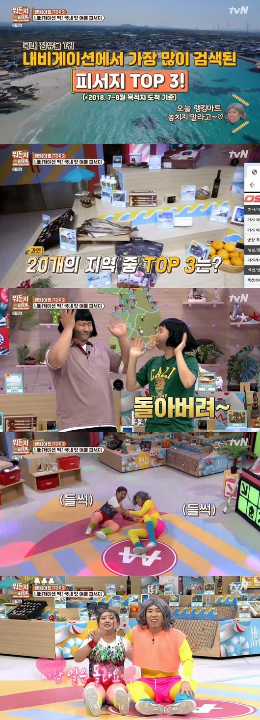 이후 ‘뭐든지 랭킹마트’ 코너가 이어졌다. 오늘의 주제는’여름철 내비게이션 앱에서 가장 많이 검색된 피서지 TOP3’를 맞추는 것.