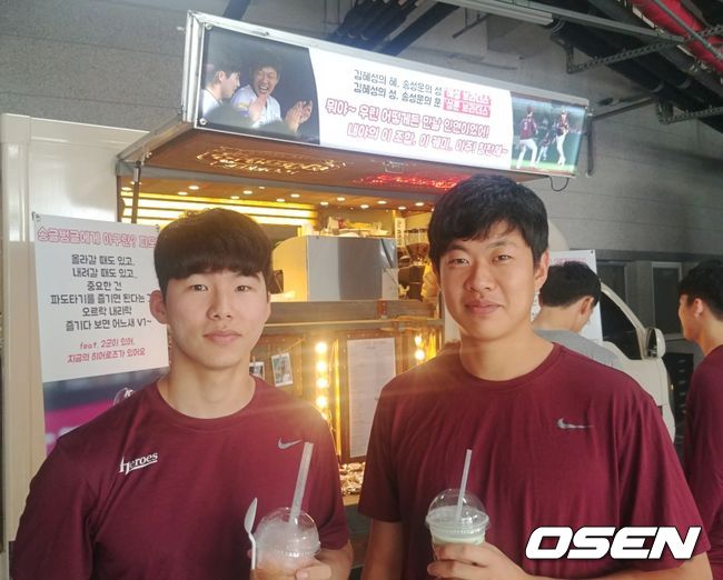 송성문은 “정말 감사드린다. 태어나서 처음으로 내 이름으로 된 커피차를 받았는데, 더 열심히 해서 좋은 모습을 보여드릴 수 있도록 하겠다”고 고마운 마음을 전했다. 김혜성 역시 “정말 감사드리고 기분 좋다. 힘내서 팀이 좋은 성적을 내는데 힘을 보탤 수 있도록 노력하겠다”고 밝혔다./ bellstop@osen.co.kr
