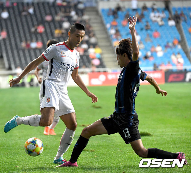 김호남과 남준재는 측면에 배치되어 공격을 시도했다. 전반 초반만 하더라도 활발하게 움직인 것은 남준재. 하지만 인천 수비에 막혀 어려움도 많았다.