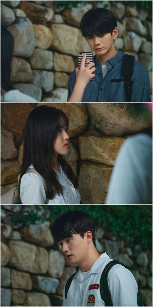 그런 가운데 공개된 사진에는 준우와 수빈, 휘영, 세 사람의 슬픈 눈빛이 교차되며 이목을 집중시킨다. 먼저 수빈의 휴대폰 화면에 시선을 고정한 준우의 표정이 점점 굳어간다. 원망과 슬픔 어린 눈빛으로 준우를 지켜보는 수빈의 차가운 반응도 호기심을 더한다. 지난 영화관 데이트에서 휴대폰을 바라보던 중 눈물짓는 수빈의 모습이 공개된 만큼, 과연 수빈이 준우에게 공개한 비밀이 무엇일지 궁금증을 증폭한다. 여기에 슬픔에 젖은 수빈을 바라보며 마음 아파하는 휘영까지 열여덟 소년, 소녀들의 첫사랑은 오늘도 ‘단짠’을 오간다.
