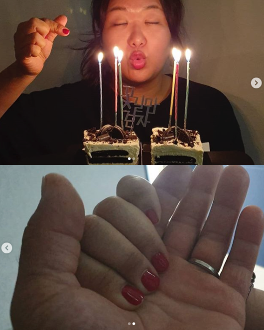 함께 올린 사진에서 하재숙은 촛불이 켜진 케이크 앞에서 사랑스럽게 입술을 쭉 내밀며 손가락 하트를 하고 있다. ’꽃길만 걷자’라는 문구가 인상적. 또 다른 사진에서는 남편과 손을 꼭 잡을 모습으로 보는 이들을 흐뭇하게 만든다.