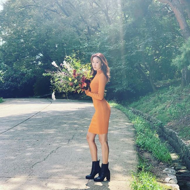 공개된 사진 속 한혜진은 꽃다발을 안고 화보 촬영에 임하고 있다. 주황색 니트 원피스와 앵클 부츠를 착용한 한혜진은 늘씬하고 탄탄한 보디라인을 자랑해 눈길을 끈다.