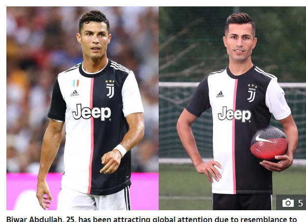 이라크 쿠르드족 출신인 25살의 비와르 압둘라는 지난 5월 이라크서 영국에서 들어온 이후 호날두와 닮은 외모로 관심을 모으고 있다.