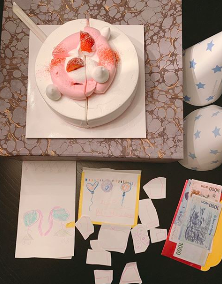 사진 속에는 권상우와 손태영, 그리고 아들 딸인 룩희, 리호의 손 모습이 담겨져 있다. 가족은 손하트로 화기애애한 분위기를 드러낸다. 더불어 손태영을 그린 잘 그린 그림 한 장도 눈길을 끈다. 생일 축하 반응과 함께 그림에 대한 호평이 이어지고 있다.
