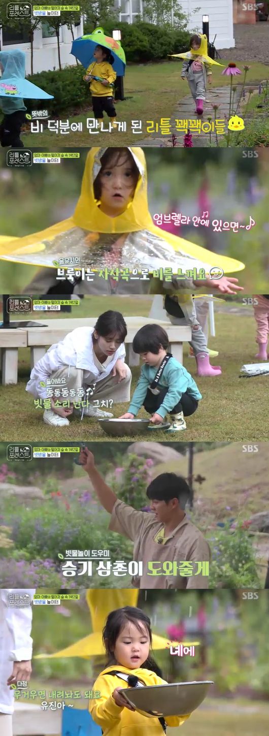 이때, 아이들의 오감을 자극하는 빗방울 놀이를 떠올렸다. 아이들이 우비를 입고 귀엽게 등장했고, 돌봄이들은 "빗소리 들으러 가자"면서 아이들과 밖으로 향했다. 박나래는 아이들에게 "빗물을 모으자"면서 빗물놀이를 시작했다. 정소민도 아이들의 오감만족 놀이에 동참했고, 이승기는 "빗물 많이 모으면 맛있는 것 주겠다"며 아이들을 솔깃하게 했다. 이어 빗물놀이 도우미가 되어 아이들과 놀이에 빠졌다.