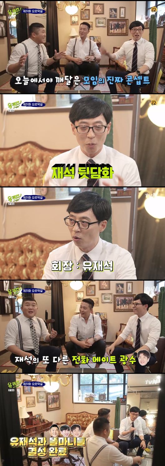 이날 유재석은 "나도 모임을 만들어야겠다"며 "일단 조세호, 남창희는 꼭 껴야 한다"고 말했다. 조세호는 "광수씨도 껴달라. 요즘 운동을 같이 하는데 맨날 재석이 형 얘길 한다"고 말해 웃음을 자아냈다.
