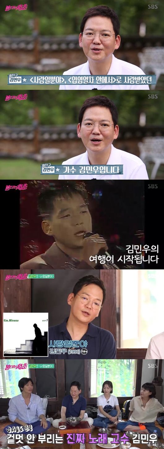 20일 방송된 SBS 예능 '불타는 청춘'에서 데뷔와 동시에 큰 사랑을 받았던 미소년 감성 보컬 김민우가 새친구로 합류했다. 아름다운 미성으로 사랑 받았던 그와의 첫 여행이 본격 시작됐다.