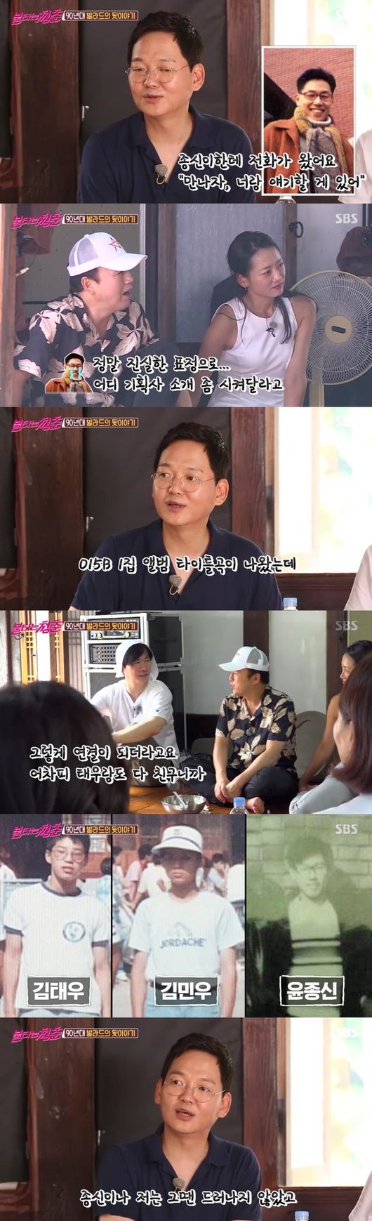 이때, O15B 멤버 장호일은 "김태우, 민우랑 비슷한 또래, 셋 다 고등학교 동창이라 들었다"면서 "사실 윤종신을 공일오비로 보낸 사람이 김민우"라고 했다.