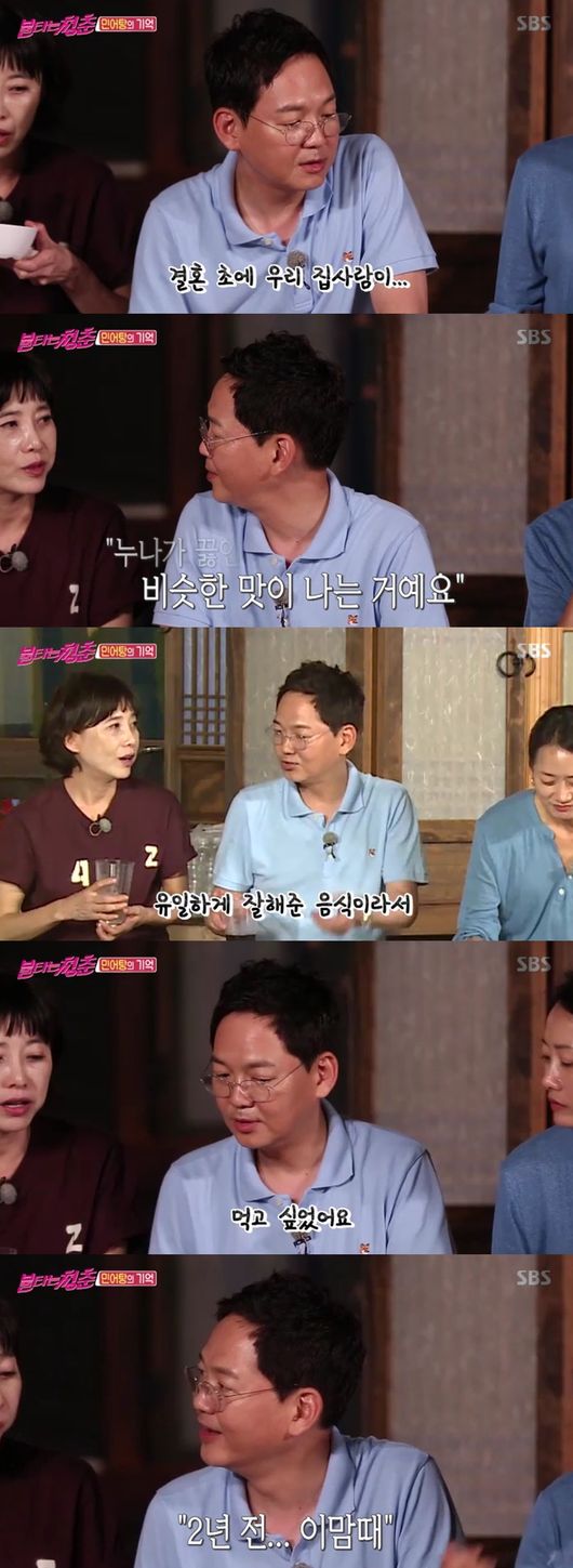민어탕을 먹던 중, 김민우는 말 없이 민어탕을 먹으면서 "결혼 초에 집사람이 된장찌개를 끓이면 한강이어도 맛있게 먹지 않냐"면서 "어느날 조미료 안 넣고 음식을 시작하는데 제일 잘 끓이는 것이 민어탕"이라며 입을 열었다. 김민우는 "혜림이 누나 스타일로 애호박 넣었다, 누나가 끓인 게 비슷한 맛이 나 기분이 묘하다, 유일하게 잘 해준 음식이라 자주 끓여달라고 집으로 들고 갔다"면서 "2년 전 이 맘 때다, 정말 먹고 싶었다"며 눈시울을 붉혔다.