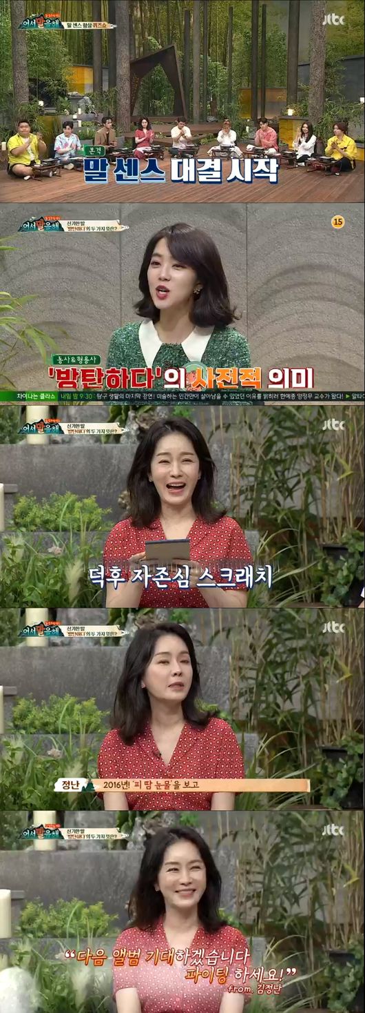 이어 방탄소년단의 열혈 팬이라고 밝힌 김정난은 "피 땀 눈물'을 듣고 입덕했다고 말하면서 하루도 빼놓지 않고 방탄소년단의 영상을 챙겨볼 본다고 말했다. 이에 전현무가 "멤버들 중 누가 제일 좋은지 말해달라"고 물었고, 김정난은 "지민을 말하며"며 쑥쓰러워했다. 김정난은 방탄소년단에게 영상 편지를 전했다."현재 휴식 기간인걸로 알고 있다. 잘 쉬고 더 좋은 앨범을 기대하고 있겠다"면서 진심어린 마음을 전했다.