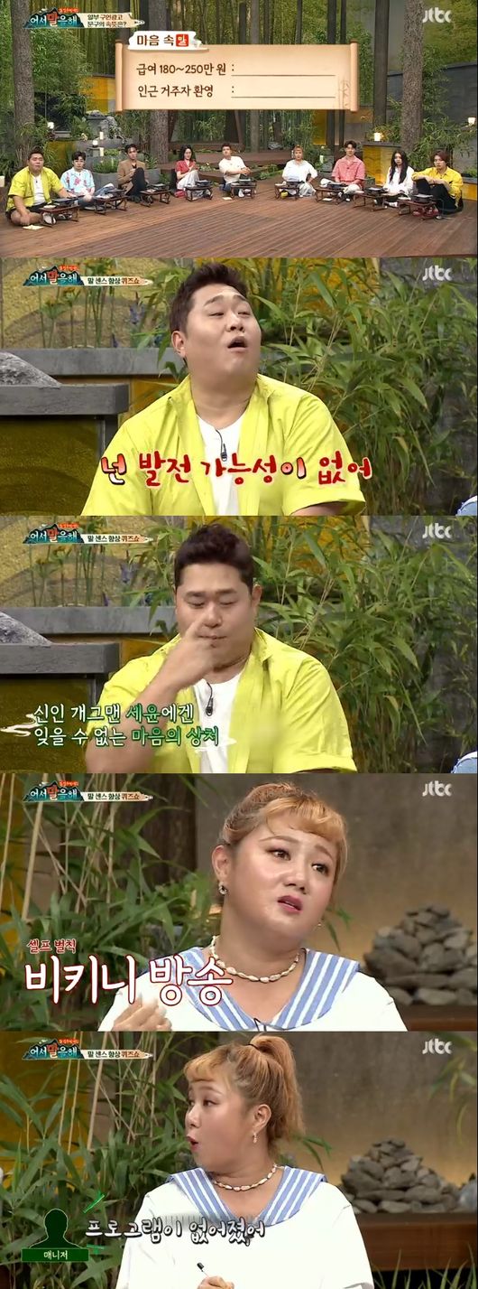 이에 전현무는 방송 생활하면서 상처 받았던 적 있냐는 질문을 던졌다. 문세윤은 "넌 발전 가능성이 없어. 면전에 x를 그리더라"고 말했다. 이어 나래는 벌칙으로 비키니를 입었고 그 후 프로그램이 없어졌다. 담당 피디는 지방으로 발령이 났다"며 신인시절에 겪은 이야기를 건네며 "이 프로도 당장 없앨 수 있어"라고 말했다..