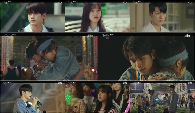 다음 날, 수학여행의 하이라이트인 장기자랑도 열렸다. 3반 대표로 나서기로 했던 고동(백재우 분)을 대신해 무대에 오른 준우가 감미로운 노래로 이목을 집중시켰다. 수많은 아이들 사이에 오직 둘만 남은 듯한 두 사람의 눈 맞춤과 방송 말미, 수빈을 품에 안은 준우의 모습은 시청자들의 ‘첫사랑’의 기억을 소환하며 설렘과 여운을 남겼다.다시 한번 펼쳐질 준우와 수빈의 꽃길 로맨스를 예고한 가운데, 열여덟 소년, 소녀들이 그려나갈 풋풋한 청춘 로맨스에 귀추가 주목된다.