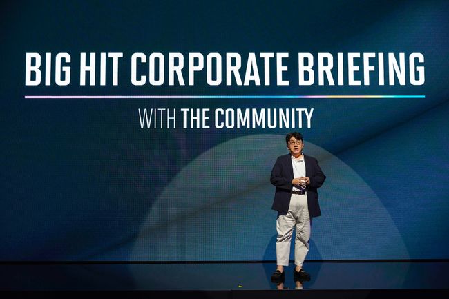 빅히트는 21일, 관계사 및 협력사 등 200여 명을 대상으로 서울 대치동 섬유센터에서 ‘공동체와 함께하는 빅히트 회사 설명회’를 열고 빅히트 방시혁, 윤석준 대표, 비엔엑스 서우석 대표가 차례로 무대에 올라 음악 산업 혁신을 위한 빅히트의 비전을 공개했다.
