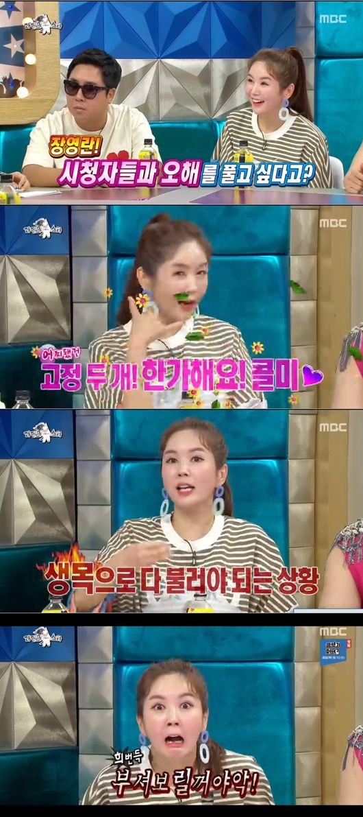 이어 장영란은 '트로트를 하면 돈을 좀 땡길 수 있을 것 같아서 도전했다. 신비주의 가수 라니로 활동했는데 가면을 딱 벗으면 장영란 이런 그림을 원했는데 가면을 써도 장영란인줄 아시더라. 그때부터 비호감 이미지가 생겼다”고 털어놨다. 또한 국립극단 연수단원에 있으면서 연기공부도 했다고 밝혔다