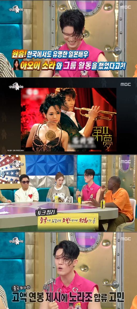 이어 중국에서 활동하던 중 한한령이 내려졌다며 그때 중국에서 활동하던 분들이 다 한국으로 가는 바람에일이 정말 많았다고 말했다. 이어 돈도 정말 많이 벌고 그때 억대 연봉의 ceo 제안도 들어왔다고 했다. 하지만 그때 조빈에게 연락이 왔고 노라조 제안을 받았다고 했다. 이어 부모님 생각이 많이 나서 한국으로 오게 됐다고 말했다.