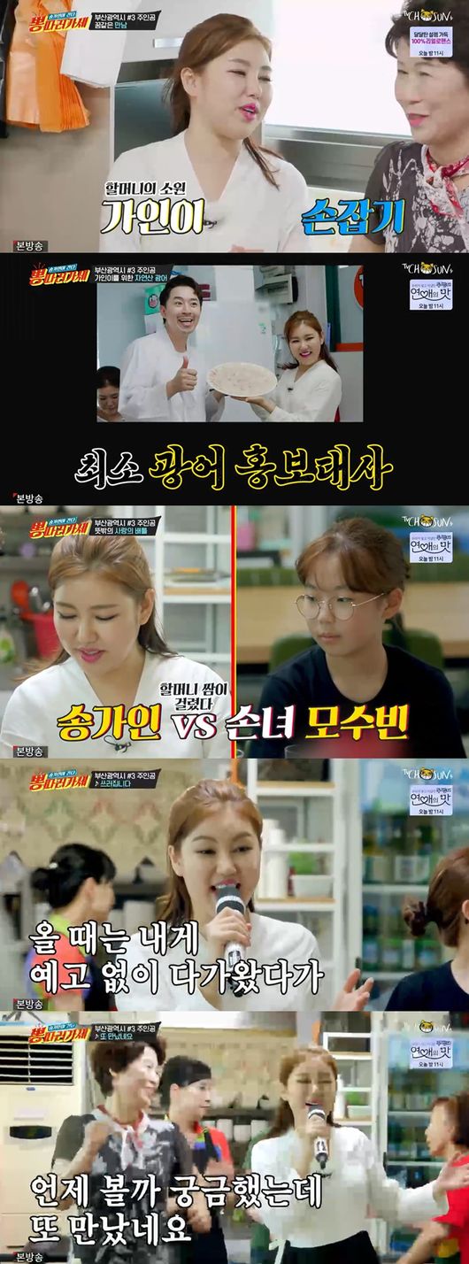 다함께 할머니가 일하는 기장시장으로 향했다. 싱싱한 수산물이 가득한 곳이었다. 서프라이즈를 하기 위해 비밀작전을 시작, 송가인을 보자마자 신청자 할머니는 "꿈인가 생시인가"라며 송가인을 보자마자 손을 잡았다.