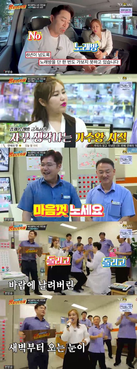 계속해서 붐은 부산 서면역 부역장의 사연을 전했다. 역사 안에서 3교대를 하며 매일 빽빽한 근무에 지친 사연자는 "회식다운 회식해본 지가 오래, 6년 넘도록 노래방 단 한 번도 못 갔다"면서 "빽빽한 근무에 힘든 직원들을 위해 6년 묵은 회식분위기를 내달라"고 전했다.