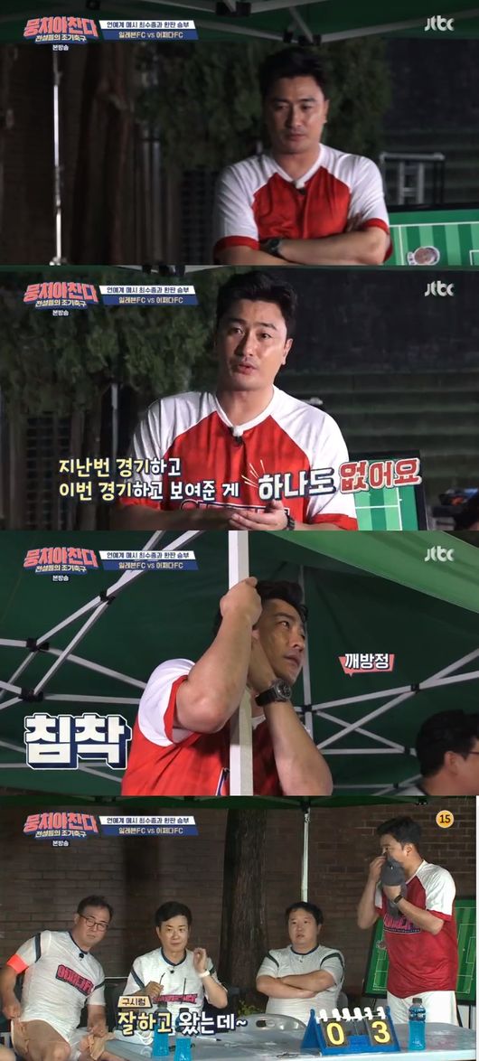 지난 22일 방송된 jtbc '뭉쳐야 찬다'에서는 선수들에게 화를 내는 안정환의 모습이 그려졌다.