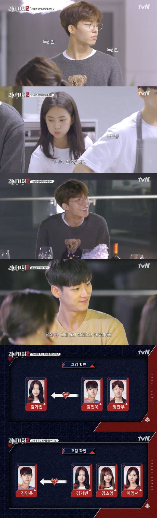 호감을 표시한 이도 드러났다. 김인욱과 정찬우는 김가빈에게 표를 던졌고, 김가빈은 김인욱을 선택했다. 이로써 방송 내내 세 사람의 미묘했던 기류는 삼각관계로 결정났다. /notglasses@osen.co.kr