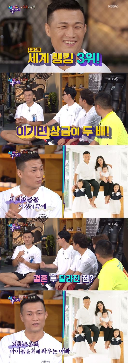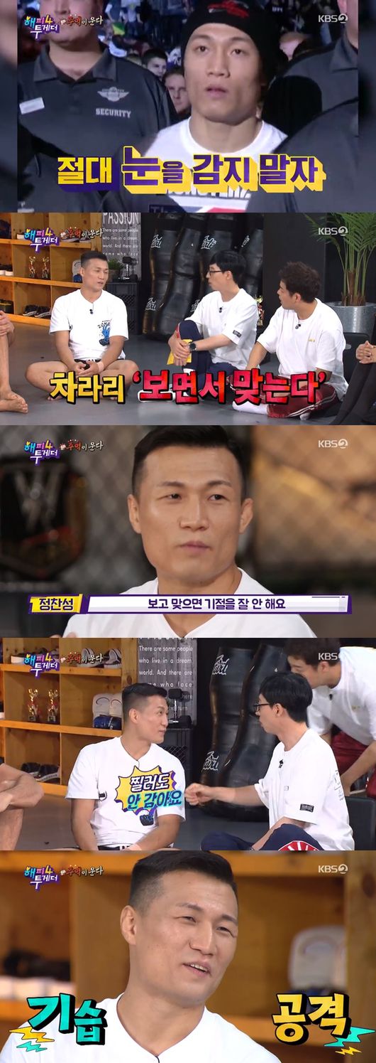 22일 방송된 KBS2TV '해피투게터4'에서는 '주먹이 운다' 특집으로 꾸며진 가운데 UFC선수 정찬성이 출연했다.