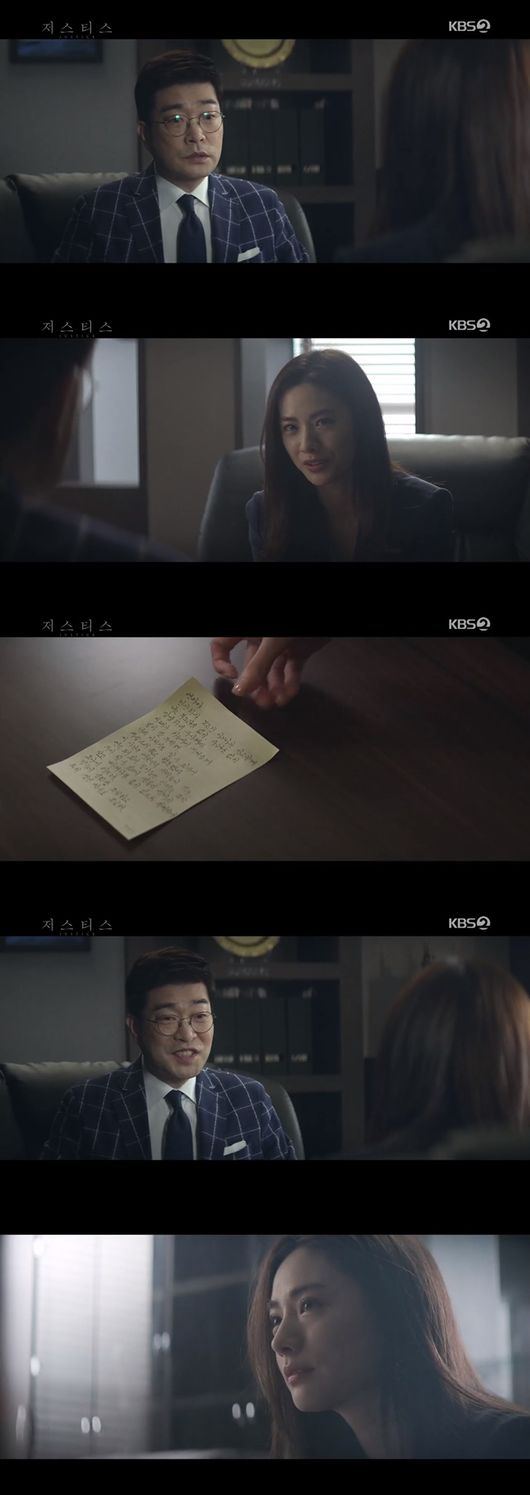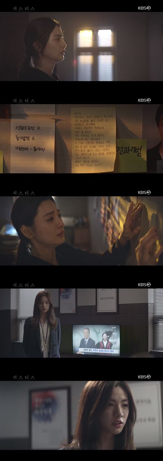 22일 방송된 KBS2TV '저스티스' 에서는 서연아(나나)가 투신 자살을 선택한 아버지 서동석(이호재) 검사의 진짜 유서를 발견하고 오열했다.