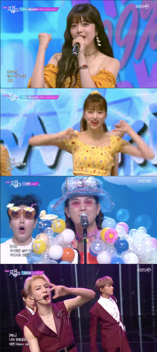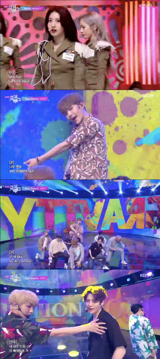 ITZY의 'ICY'는 겉은 차가워 보이지만 속은 뜨거운 열정이 넘치는 모습을 표현한 서머송. ITZY는 데뷔곡 '달라달라'와는 또 다른 매력과 개성 넘치는 퍼포먼스를 자랑하며, 괴물 신인의 저력을 입증했다. 또한 이날 ‘뮤직뱅크’에선 컴백무대도 펼쳐졌다. 에버글로우는 타이틀곡은 ‘Adios’로 팬들을 만났다. 강렬한 비트와 단 한번으로도 귀에 쏙 감기는 멜로디, 중독성 강한 휘파람이 적절한 균형을 이루며 에버글로우만의 시크한 매력을 표현했다.
