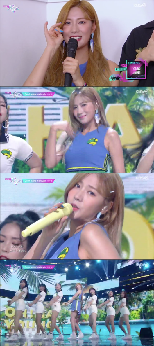 오하영은 에이핑크 막내가 아닌 솔로 가수로 출격했다. 오하영은 'Don't Make Me Laugh’를 통해 청량함과 상큼함을 동시에 뽐냈다.