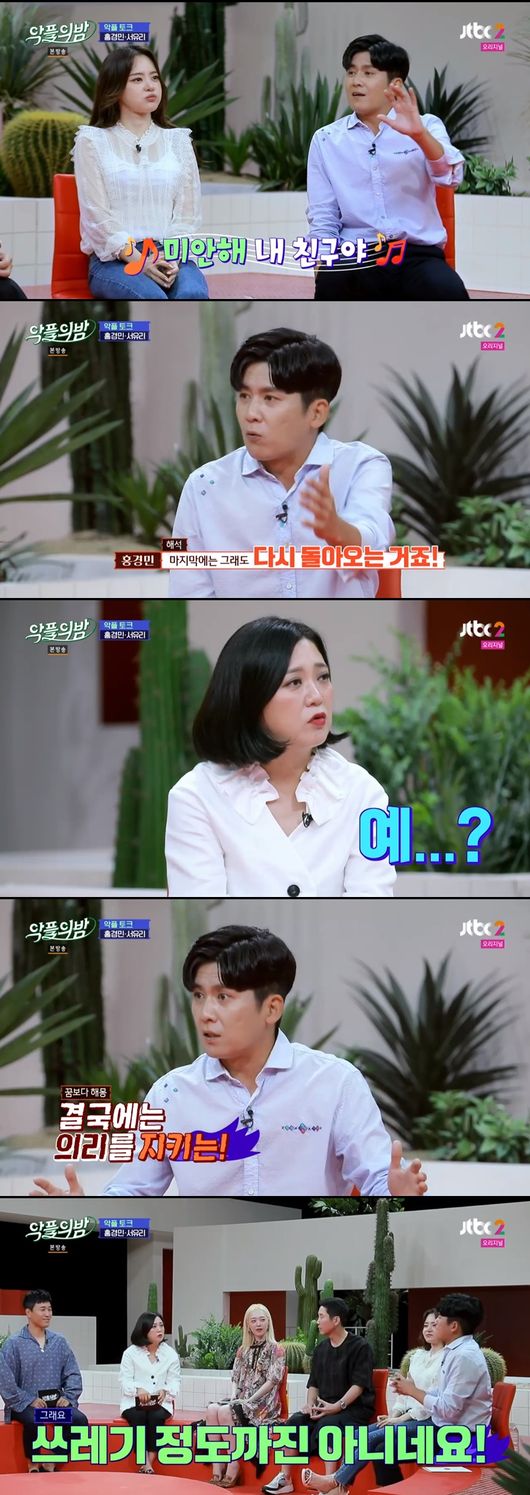 23일에 방송된 JTBC2 '악플의 밤'에서는 게스트로 홍경민과 서유리가 출연해 악플에 대한 솔직한 생각을 전했다.