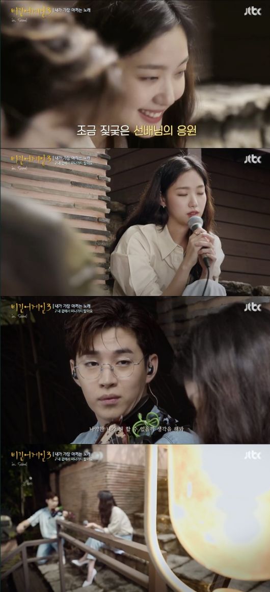 23일 밤 방송된 JTBC 예능 프로그램 '비긴어게인3(이하 비긴3)' 6회에서는 정해인과 김고은이 게스트로 출연했다. 영화 '유열의 음악앨범' 홍보 차 등장한 두 사람은 서울 한복판에서 생애 첫 버스킹을 시도했다.