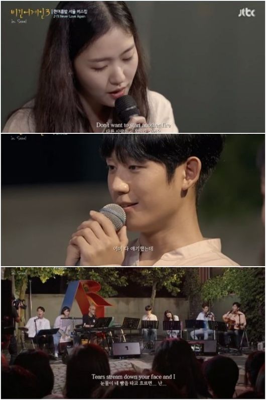또한 김고은은 헨리와 준비한 '아윌 네버 러브 어게인'을 수준급으로 소화해 박수갈채를 받았다. 여기에 정해인이 '인생곡'으로 김광석의 '서른즈음에'를 다시 한번 불러 울림을 더했다. 끝으로 '비긴어게인3' 멤버 전원이 콜드플레이의 명곡 '픽스 유(FIX YOU)'를 부르며 감동을 선사했다.