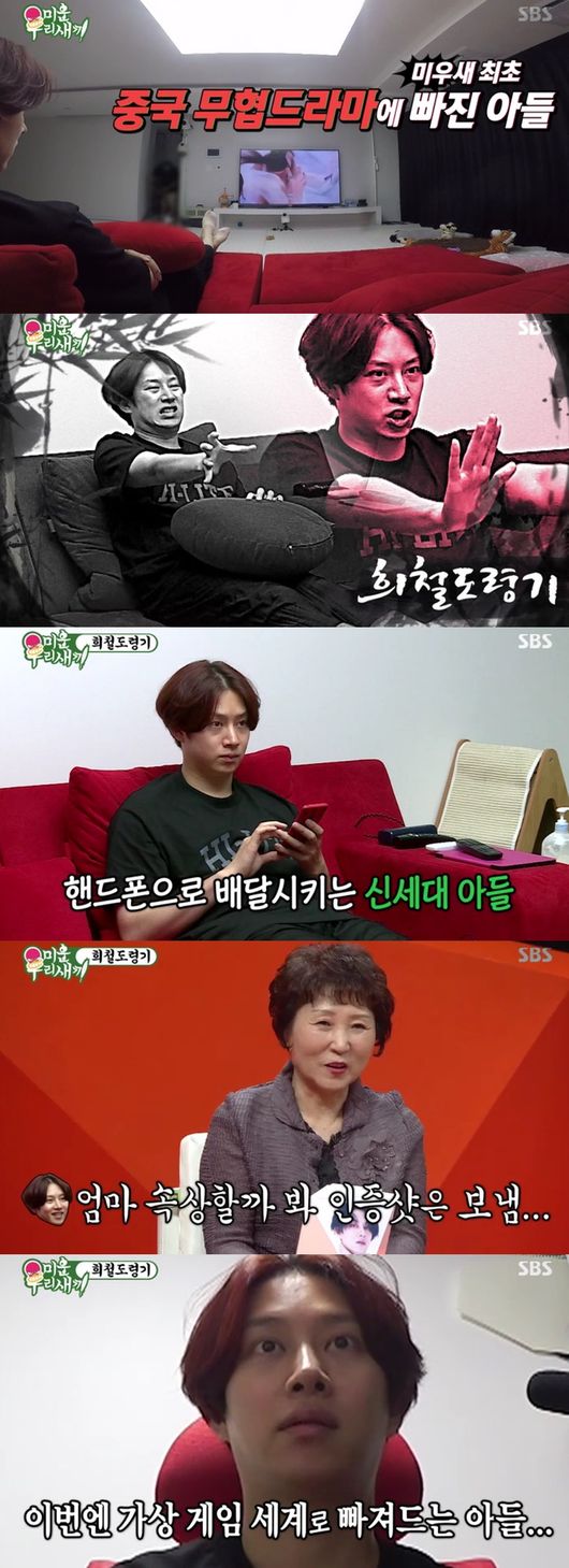 김희철은 가장 좋아하는 중국 무협드라마 빠져 반복 재생했다. 이를 본 MC들은 "특별한 일 없으면 집돌이"라고 말했다. 화창한 주말에도 3시간 넘게 TV에만 빠져 지내는 일상을 본 母는 "외우도록 봐야하냐"며 답답해했다. 중국 드라마 홀릭 중, 식사할 시간이 되자 김희철은 휴대폰으로 배달음식을 시켰다.