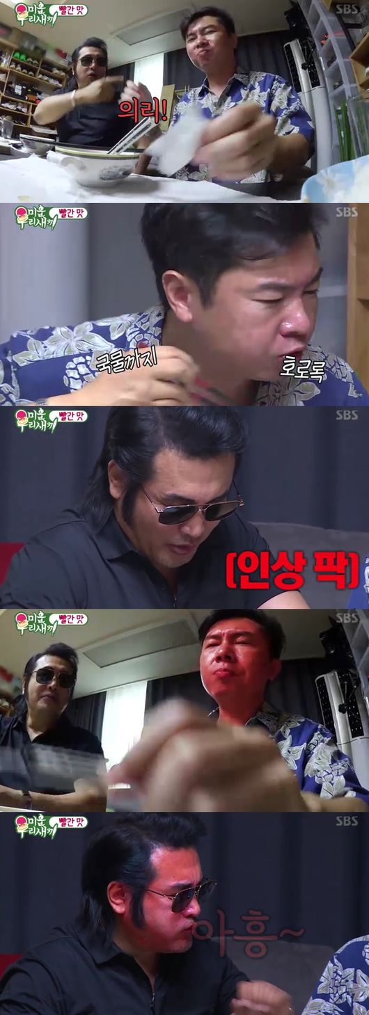 이상민은 "캡사이신을 넣은 뉴 캡사이신"이라며 매운맛 정점을 찍었다. 이상민은 한 입 맛 보더니 기침을 호소 "도전하지 말라"고 했다. 하지만 이는 더욱 두 사람을 도발시켰고, 결국 기침 퍼레이드가 되어서야 의리 매운맛이 끝나 폭소하게 했다.