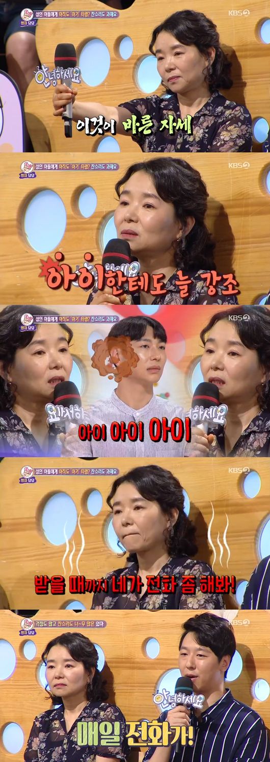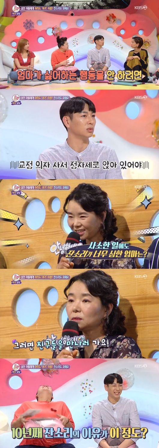 26일에 방송된 KBS2TV '안녕하세요'에서는 훈남 아들이 등장해 때를 가리지 않고 잔소리를 하는 엄마에 대한 고민을 털어놔 눈길을 끌었다.