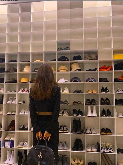 특히 편집숍이라고 해도 믿을 만한 드레스룸이 이목을 집중시켰다. 높은 천장에까지 벽면을 가득 채우고 있는 수납공간과 그 안에 잘 정리된 신발, 액세서리, 그리고 의상 등이 보는 이의 감탄을 자아냈다.